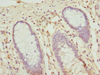 Immunohistochemistry of paraffin-embedded human colon cancer using CSB-PA016348ESR2HU at dilution of 1:100