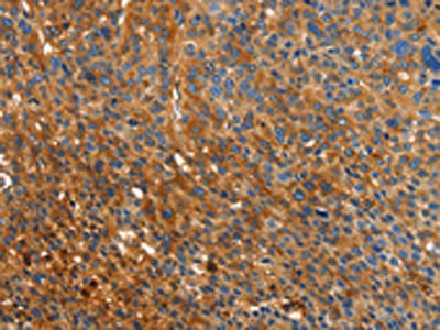 The image on the left is immunohistochemistry of paraffin-embedded Human liver cancer tissue using CSB-PA292969(ORM2 Antibody) at dilution 1/40, on the right is treated with fusion protein. (Original magnification: ×200)