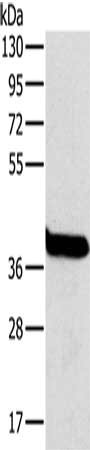 Gel: 8%SDS-PAGE, Lysate: 40 μg, Lane: Mouse liver tissue, Primary antibody: CSB-PA189809(OTC Antibody) at dilution 1/800, Secondary antibody: Goat anti rabbit IgG at 1/8000 dilution, Exposure time: 1 second