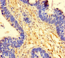 Immunohistochemistry of paraffin-embedded human ovarian cancer using CSB-PA03595A0Rb at dilution of 1:100