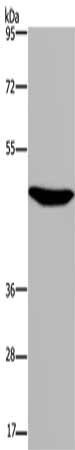 Gel: 8%SDS-PAGE, Lysate: 40 μg, Lane: Mouse brain tissue, Primary antibody: CSB-PA211403(P2RX2 Antibody) at dilution 1/300, Secondary antibody: Goat anti rabbit IgG at 1/8000 dilution, Exposure time: 1 minute
