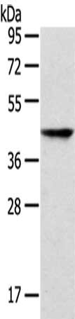 Gel: 8%SDS-PAGE,Lysate: 40 μg,,Primary antibody: CSB-PA576176(P2RY2 Antibody) at dilution 1/200 dilution,Secondary antibody: Goat anti rabbit IgG at 1/8000 dilution,Exposure time: 30 seconds
