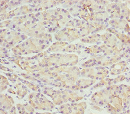 Immunohistochemistry of paraffin-embedded human gastric cancer using CSB-PA890765ESR2HU at dilution of 1:100