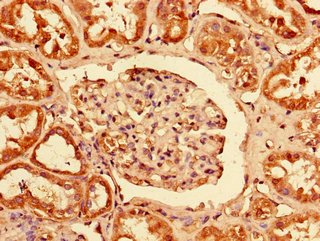 Immunohistochemistry of paraffin-embedded human kidney tissue using CSB-PA017651LA01HU at dilution of 1:100