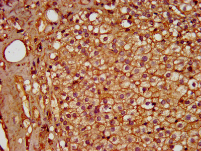 IHC image of CSB-PA527985LA01HU diluted at 1:600 and staining in paraffin-embedded human adrenal gland tissue performed on a Leica BondTM system. After dewaxing and hydration, antigen retrieval was mediated by high pressure in a citrate buffer (pH 6.0). Section was blocked with 10% normal goat serum 30min at RT. Then primary antibody (1% BSA) was incubated at 4°C overnight. The primary is detected by a biotinylated secondary antibody and visualized using an HRP conjugated SP system.
