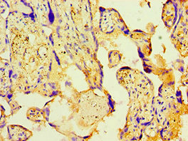 Immunohistochemistry of paraffin-embedded human placenta tissue using CSB-PA017718ESR2HU at dilution of 1:100