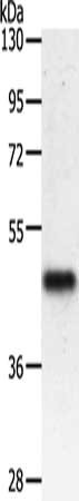 Gel: 10%SDS-PAGE, Lysate: 50 μg, Lane: Mouse heart tissue, Primary antibody: CSB-PA656448(PDK2 Antibody) at dilution 1/500, Secondary antibody: Goat anti rabbit IgG at 1/8000 dilution, Exposure time: 1 minute