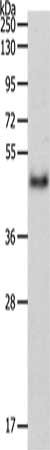 Gel: 10%SDS-PAGE, Lysate: 60 μg, Lane: Mouse pancreas tissue, Primary antibody: CSB-PA642637(PDK4 Antibody) at dilution 1/700, Secondary antibody: Goat anti rabbit IgG at 1/8000 dilution, Exposure time: 2 minutes