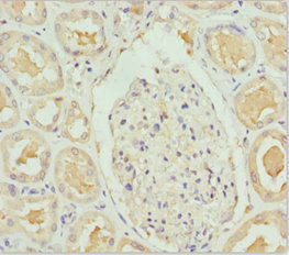 Immunohistochemistry of paraffin-embedded human kidney tissue using CSB-PA621865DSR1HU at dilution of 1:100