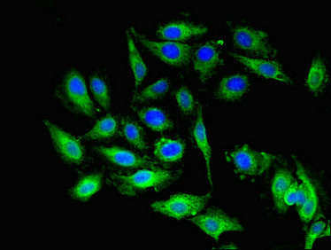 Immunofluorescent analysis of Hela cells using CSB-PA621865DSR1HU at dilution of 1:100 and Alexa Fluor 488-congugated AffiniPure Goat Anti-Rabbit IgG(H+L)