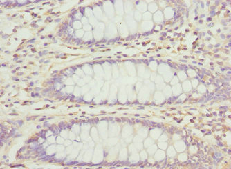 Immunohistochemistry of paraffin-embedded human colon cancer using CSB-PA017769ESR1HU at dilution of 1:100