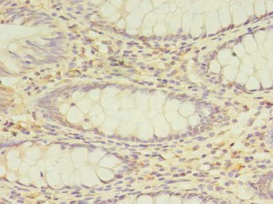 Immunohistochemistry of paraffin-embedded human colon cancer using CSB-PA017796LA01HU at dilution of 1:100