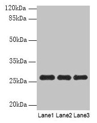 Observed band size: 27 kDa -