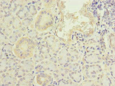 Immunohistochemistry of paraffin-embedded human pancreatic tissue using CSB-PA017813LA01HU at dilution of 1:100