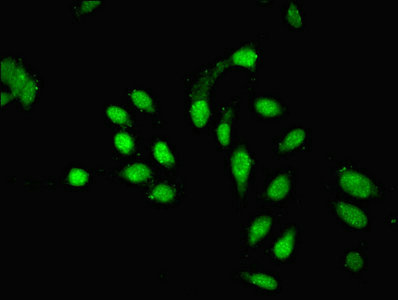 Immunofluorescent analysis of Hela cells using CSB-PA017898LA01HU at dilution of 1:100 and Alexa Fluor 488-congugated AffiniPure Goat Anti-Rabbit IgG(H+L)