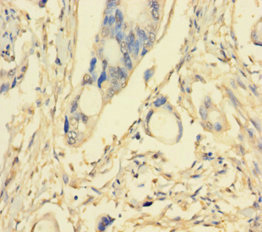 Immunohistochemistry of paraffin-embedded human pancreatic cancer using CSB-PA841225LA01HU at dilution of 1:100