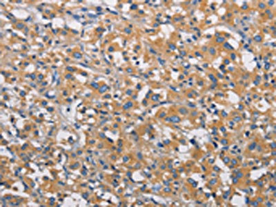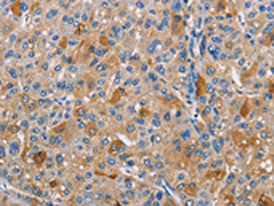 The image on the left is immunohistochemistry of paraffin-embedded Human liver cancer tissue using CSB-PA924394(PIKFYVE Antibody) at dilution 1/30, on the right is treated with fusion protein. (Original magnification: ×200)
