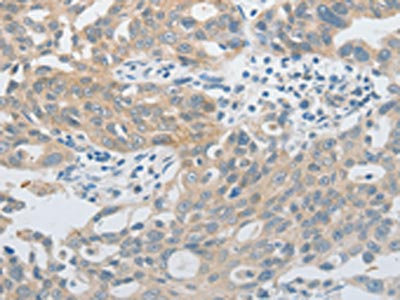 The image on the left is immunohistochemistry of paraffin-embedded Human ovarian cancer tissue using CSB-PA190095(PIWIL2 Antibody) at dilution 1/40, on the right is treated with synthetic peptide. (Original magnification: ×200)
