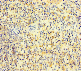 Immunohistochemistry of paraffin-embedded human spleen tissue using CSB-PA873705LA01HU at dilution of 1:100