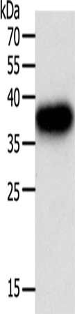 Gel: 10%SDS-PAGE, Lysate: 40 μg, Lane: A549 cells, Primary antibody: CSB-PA628429(PLAUR Antibody) at dilution 1/400, Secondary antibody: Goat anti rabbit IgG at 1/8000 dilution, Exposure time: 3 seconds