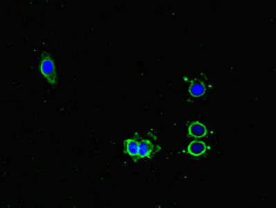 Immunofluorescent analysis of Hela cells using CSB-PA018229LA01HU at dilution of 1:100 and Alexa Fluor 488-congugated AffiniPure Goat Anti-Rabbit IgG(H+L)