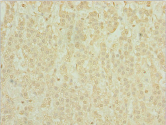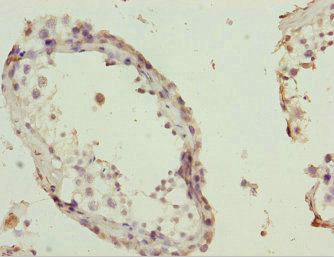 Immunohistochemistry of paraffin-embedded human testis tissue using CSB-PA822753ESR1HU at dilution of 1:100