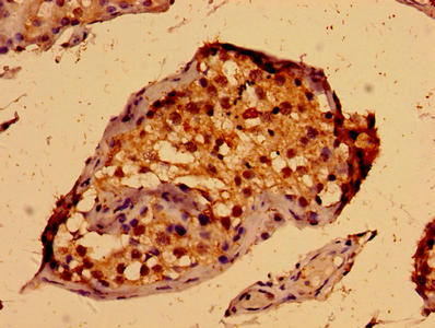 Immunohistochemistry of paraffin-embedded human testis tissue using CSB-PA887958LA01HU at dilution of 1:100