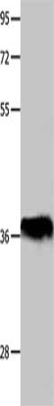 Gel: 10%SDS-PAGE, Lysate: 40 μg, Lane: Human lymphoma tissue, Primary antibody: CSB-PA280193(POU2F2 Antibody) at dilution 1/500, Secondary antibody: Goat anti rabbit IgG at 1/8000 dilution, Exposure time: 1 hour