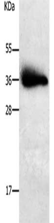 Gel: 10%SDS-PAGE, Lysate: 30 μg, Lane: Human liver cancer tissue, Primary antibody: CSB-PA918814(PPAP2A Antibody) at dilution 1/650, Secondary antibody: Goat anti rabbit IgG at 1/8000 dilution, Exposure time: 1 second