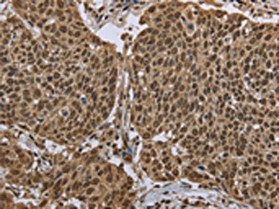 The image on the left is immunohistochemistry of paraffin-embedded Human cervical cancer tissue using CSB-PA298674(PPAT Antibody) at dilution 1/50, on the right is treated with fusion protein. (Original magnification: ×200)