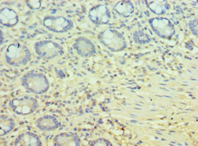 Immunohistochemistry of paraffin-embedded human small intestine tissue using CSB-PA018474ESR1HU at dilution of 1:100