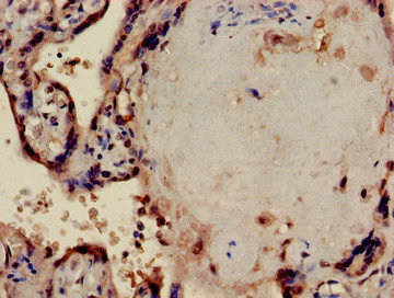 Immunohistochemistry of paraffin-embedded human placenta tissue using CSB-PA018503LA01HU at dilution of 1:100