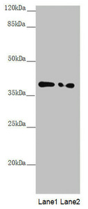 Observed band size: 39 kDa -