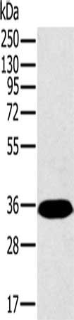 Gel: 10%SDS-PAGE, Lysate: 40 μg, Lane: Mouse brain tissue, Primary antibody: CSB-PA114505(PPP2CA Antibody) at dilution 1/450, Secondary antibody: Goat anti rabbit IgG at 1/8000 dilution, Exposure time: 20 seconds