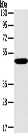 Gel: 8%SDS-PAGE, Lysate: 40 μg, Lane: Huvec cells, Primary antibody: CSB-PA088329(PPP2R3C Antibody) at dilution 1/400, Secondary antibody: Goat anti rabbit IgG at 1/8000 dilution, Exposure time: 5 seconds