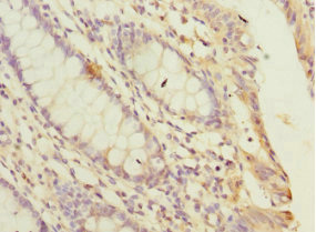 Immunohistochemistry of paraffin-embedded human colon cancer using CSB-PA619761ESR1HU at dilution of 1:100