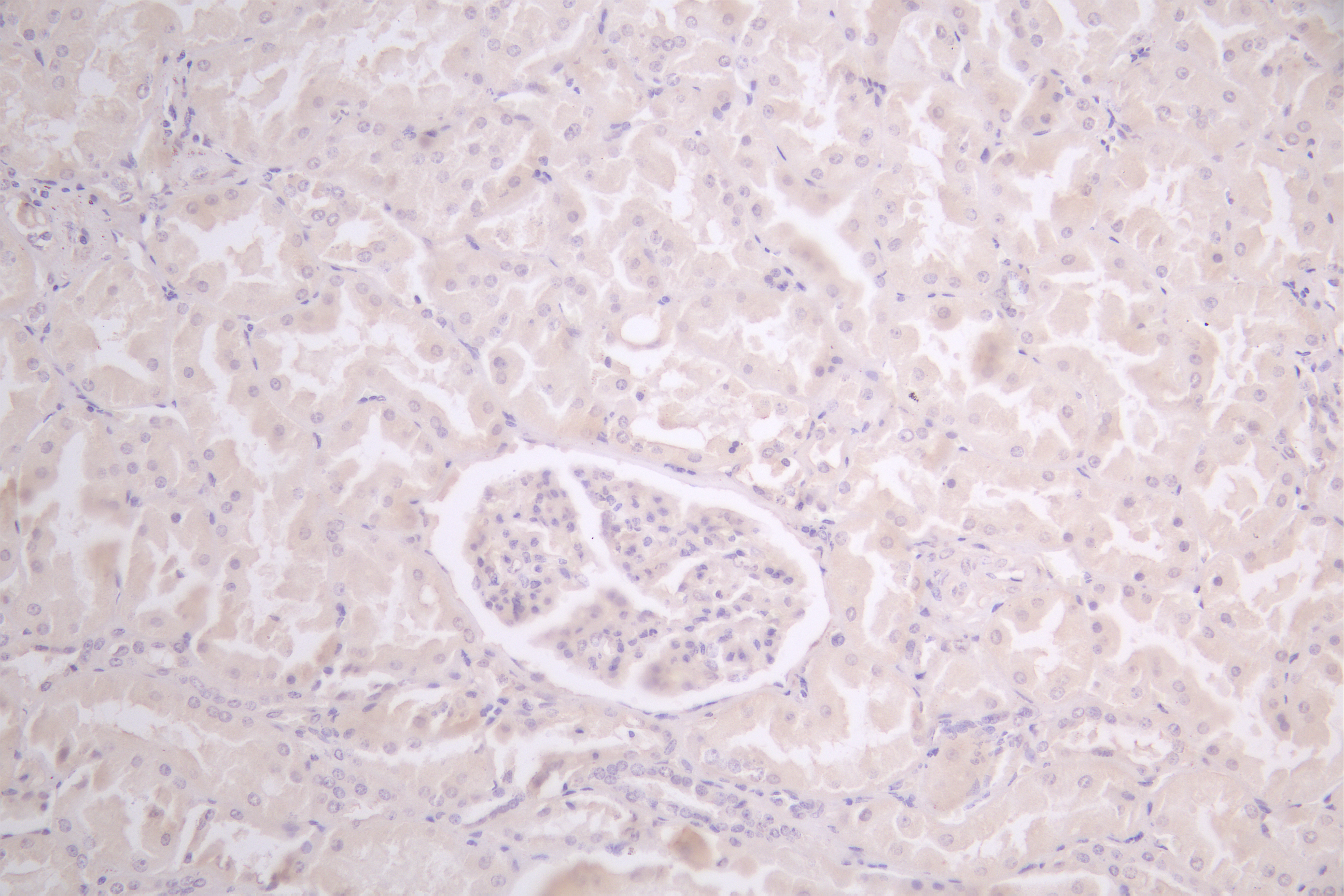 IHC image of CSB-PA822255LA01HU diluted at 1:50 and staining in paraffin-embedded human kidney tissue performed on a Leica BondTM system. After dewaxing and hydration, antigen retrieval was mediated by high pressure in a citrate buffer (pH 6.0). Section was blocked with 10% normal goat serum 30min at RT. Then primary antibody (1% BSA) was incubated at 4°C overnight. The primary is detected by a Goat anti-rabbit polymer IgG labeled by HRP and visualized using 0.05% DAB.