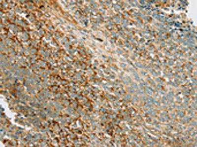 The image on the left is immunohistochemistry of paraffin-embedded Human ovarian cancer tissue using CSB-PA345903(PRKAA1 Antibody) at dilution 1/70, on the right is treated with synthetic peptide. (Original magnification: ×200)