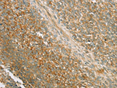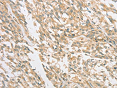 The image on the left is immunohistochemistry of paraffin-embedded Human ovarian cancer tissue using CSB-PA071831(PRKAA1 Antibody) at dilution 1/80, on the right is treated with synthetic peptide. (Original magnification: ×200)
