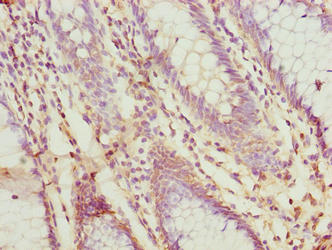 Immunohistochemistry of paraffin-embedded human colon cancer using CSB-PA839792LA01HU at dilution of 1:100