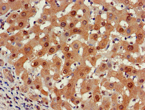 Immunohistochemistry of paraffin-embedded human liver cancer using CSB-PA018870LA01HU at dilution of 1:100