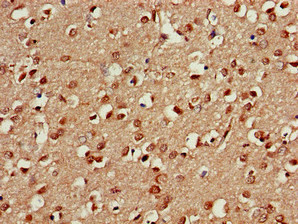 Immunohistochemistry of paraffin-embedded human brain tissue using CSB-PA018870LA01HU at dilution of 1:100