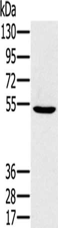 Gel: 8%SDS-PAGE, Lysate: 40 μg, Lane: 293T cells, Primary antibody: CSB-PA123862(PSMC1 Antibody) at dilution 1/350, Secondary antibody: Goat anti rabbit IgG at 1/8000 dilution, Exposure time: 40 seconds