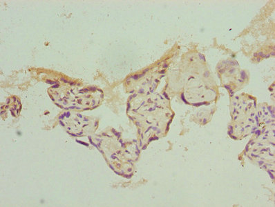 Immunohistochemistry of paraffin-embedded human placenta tissue using CSB-PA018899LA01HU at dilution of 1:100