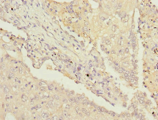 Immunohistochemistry of paraffin-embedded human lung cancer using CSB-PA890768ESR1HU at dilution of 1:100