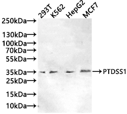 別名:PTDSS1 antibody; KIAA0024 antibody; PSSA antibody; Phosphatidylserine synthase 1 antibody; PSS-1 antibody; PtdSer synthase 1 antibody; EC 2.7.8.29 antibody; Serine-exchange enzyme I antibody