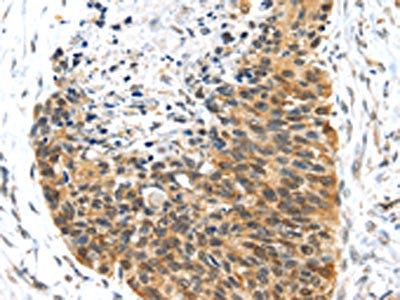 The image on the left is immunohistochemistry of paraffin-embedded Human esophagus cancer tissue using CSB-PA799716(PTMA Antibody) at dilution 1/30, on the right is treated with fusion protein. (Original magnification: ×200)