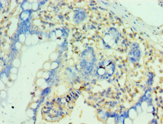 Immunohistochemistry of paraffin-embedded human small intestine tissue using CSB-PA837133ESR1HU at dilution of 1:100