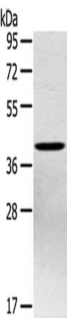 Gel: 8%SDS-PAGE, Lysate: 40 μg, Lane: Hepg2 cells, Primary antibody: CSB-PA441852(PTX3 Antibody) at dilution 1/400, Secondary antibody: Goat anti rabbit IgG at 1/8000 dilution, Exposure time: 40 seconds
