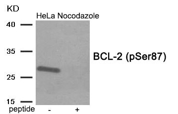 免疫原:Peptide sequence around phosphorylation site of serine 87 (A-L-S(p)-P-V) derived from Human BCL-2.